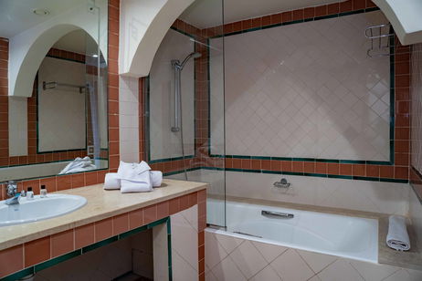 Savour the comfort and functionality of our 20 m² Double Room, featuring a pool view from your spacious private balcony or terrace. The full range of amenities includes a double bed, sofa, TV, telephone, mini-fridge, and a complimentary safe. Complete with a full bathroom and air conditioning, this room ensures a perfectly relaxing and seamless stay in Hammamet.